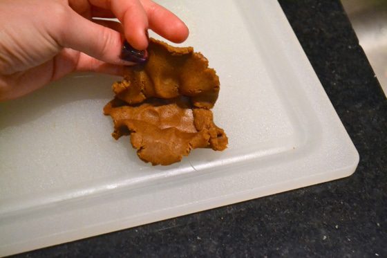 2) Take the first half of your dough and roll it out a bit. Not super flat, because you’re not making a gingerbread man. Those are so last year.